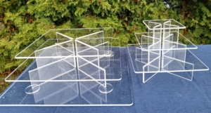 Jego zaletą jest możliwość dowolnego kształtowania wymiarów i kształtu podstaw, które są wykonane z bezbarwnego tworzywa, z lśniącymi krawędziami, co podkreśla estetykę i elegancję stojaka.